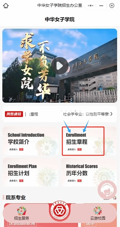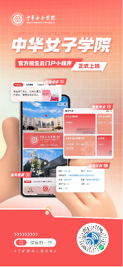为了帮助考生和家长更加直观、深入地了解我校的办学条件、办学特色以及人才培养优势,及时准确把握招生政策,中华女子学院一站式数字化智慧“云门户”上线啦,快来跟着小编的步伐一起看看吧!