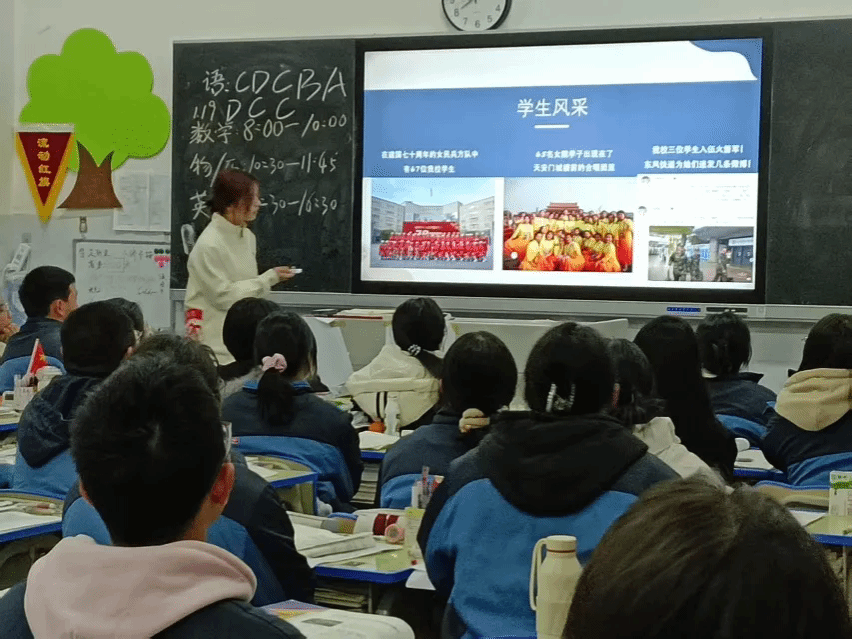在宣讲的过程中,我自豪地向学弟学妹们介绍女院,但同时我发现,其实女院在很多人眼中是一个“崭新”的概念。他们会被女院优美的校园环境和四季分明的景色所吸引,也会被总统夫人到访女院所震撼,会因为女院学子的风采而留下深刻印象,也会因为实惠的学费而惊奇……但是讲到专业简介的时候,他们似乎还不是特别理解,何为“专业”?我思考,可能是高一的孩子们对于未来的志愿填报、就业规划等,还没有特别全面、清晰的认知,在讲到这个模块的时候氛围是疑惑和不解的,但由于自身的能力以及时间的有限,我没能好好给学弟学妹们讲讲专业这方面的科普。宣讲女院的同时我也带来了在北京游玩的照片视频合集,我带着他们云游京城各大景点,看看辉煌的升旗仪式,丰富多彩的课余校园生活,他们也看得津津有味,使他们对大学有了更多憧憬与向往。我很开心学弟学妹们的参与度很高,热情度蛮高涨。