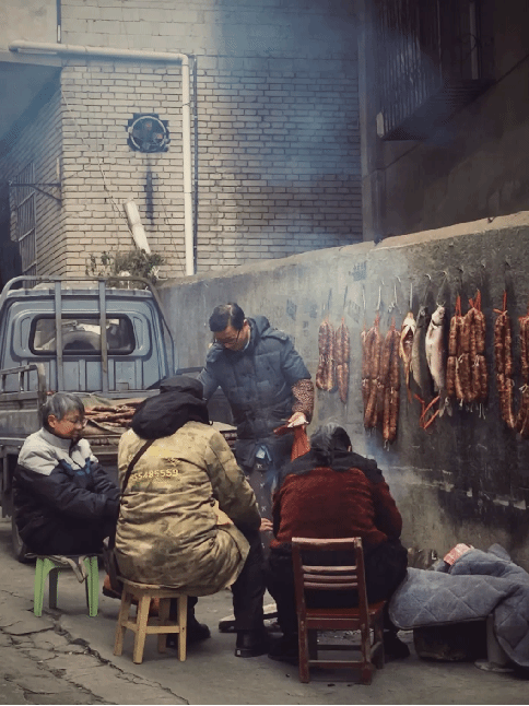 腊月廿八的街角,我被这场红色的潮汐裹着向前。糖炒栗子的甜香里,卖春联的大爷铺开一整年的祈愿;竹竿上挂满刚灌好的香肠,油亮亮地滴着时光。有位白发奶奶仔细挑着福字,说要贴得比去年高一点;骑电动车的小伙车筐里装着新买的红灯笼,等红灯时还在回头张望。