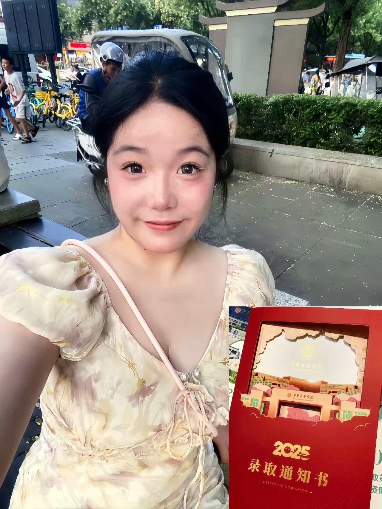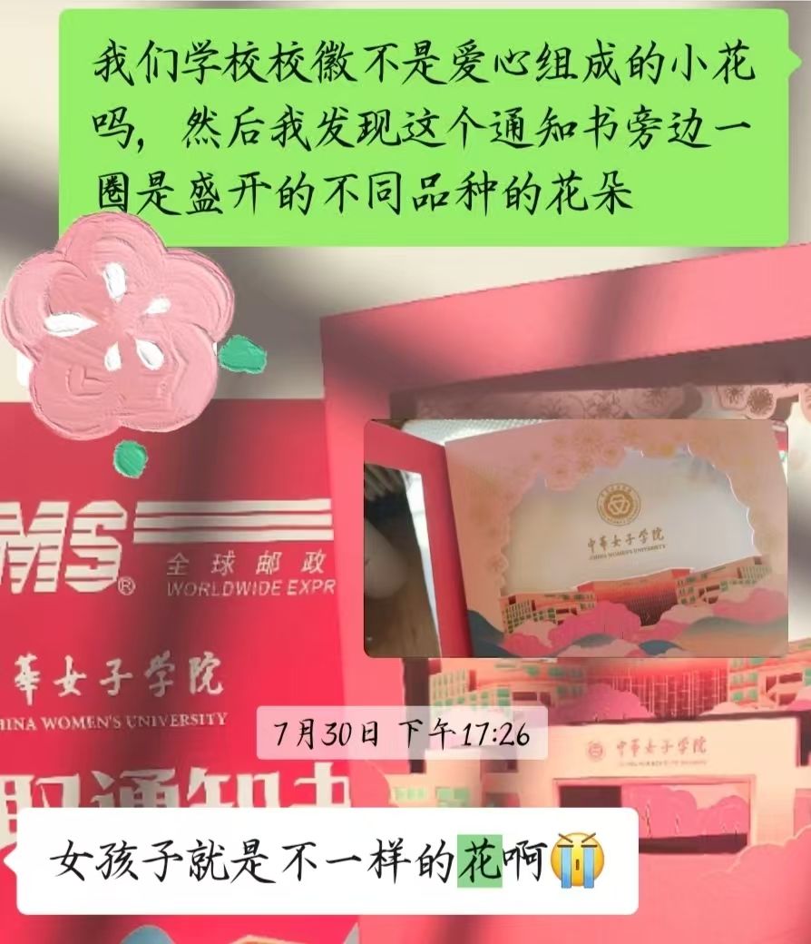 收到录取通知书后,我放着“好运来”和家人一起拆开这份礼物,然后把喜悦和感动分享给了最好的朋友。我拍下了这个如此有意义的瞬间,又订了一个小蛋糕,当做对我与女院双向奔赴的庆祝!